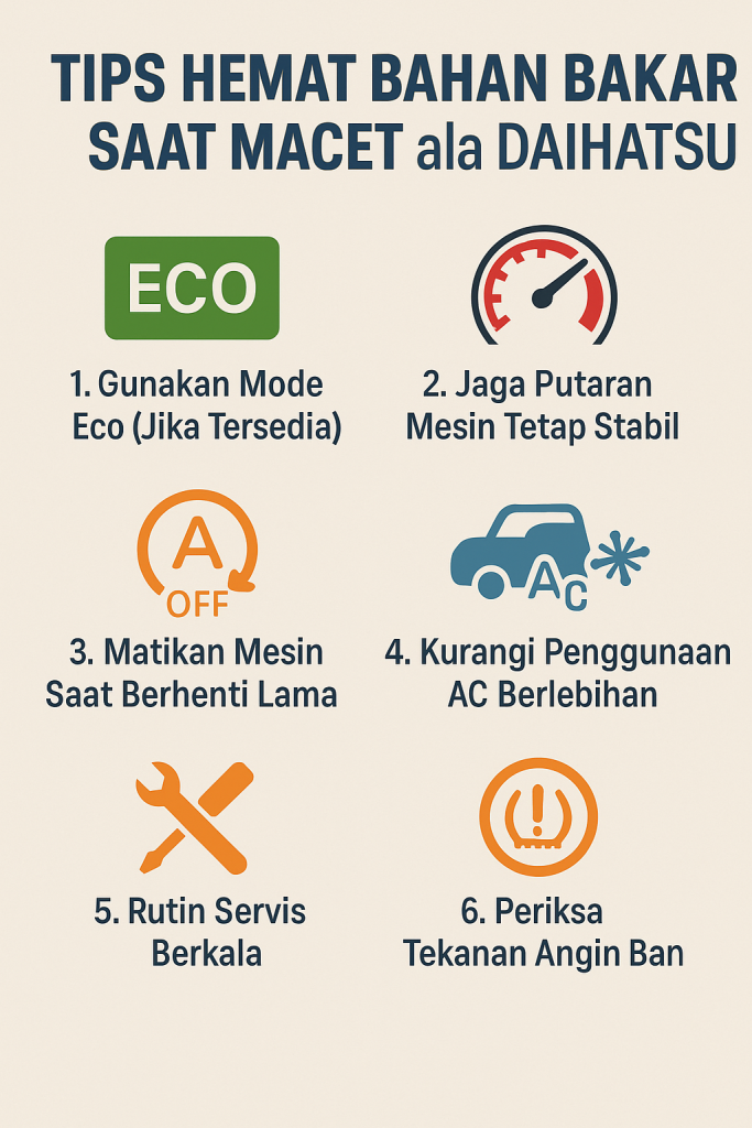 Dengan menerapkan tips-tips di atas, pemilik mobil Daihatsu bisa menjaga efisiensi kendaraan meski harus menghadapi kemacetan setiap hari. Untuk hasil maksimal, jangan lupa konsultasikan kondisi mobil secara rutin ke bengkel resmi Daihatsu.